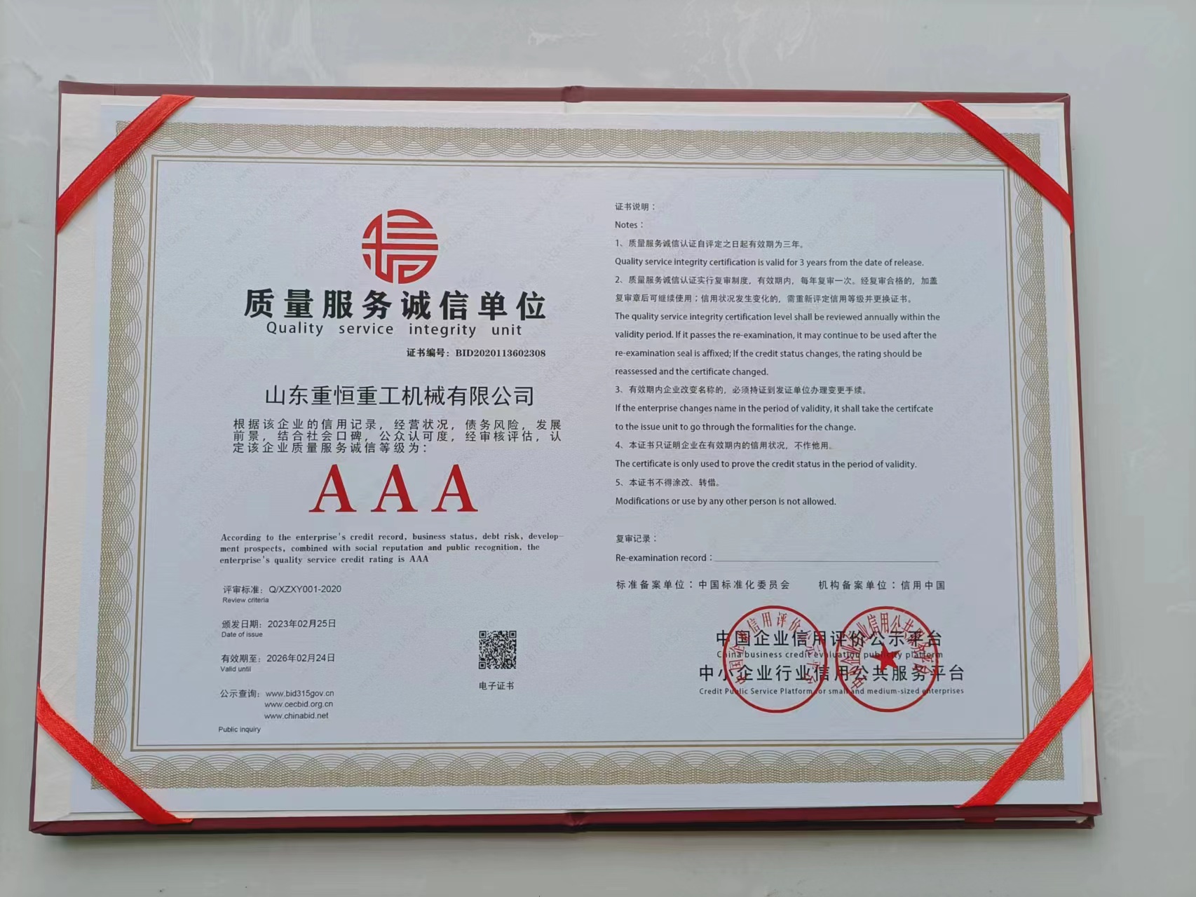 山東重恒重工機械有限公司成立于2011年6月,在其經(jīng)營期間榮獲給類專業(yè)榮譽證書和認(rèn)證資質(zhì),是國家3A級誠信經(jīng)營示范單位、質(zhì)量服務(wù)誠信單位、重合同守信用企業(yè)、3A級企業(yè)信用等級證書、國家質(zhì)量管理體系認(rèn)證證書、ISO9001等各類專業(yè)資質(zhì),公司在研發(fā)過程中,注重技術(shù)創(chuàng)新和級,通過不斷提高產(chǎn)品的品質(zhì)和性能,使產(chǎn)品能夠更好地適應(yīng)市場需求,同時憑借專業(yè)的售后服務(wù)團隊,能夠及時為客戶提供售后服務(wù)和維修保養(yǎng)服務(wù),讓客戶朋友用先進的設(shè)備享受優(yōu)質(zhì)的體系服務(wù)。